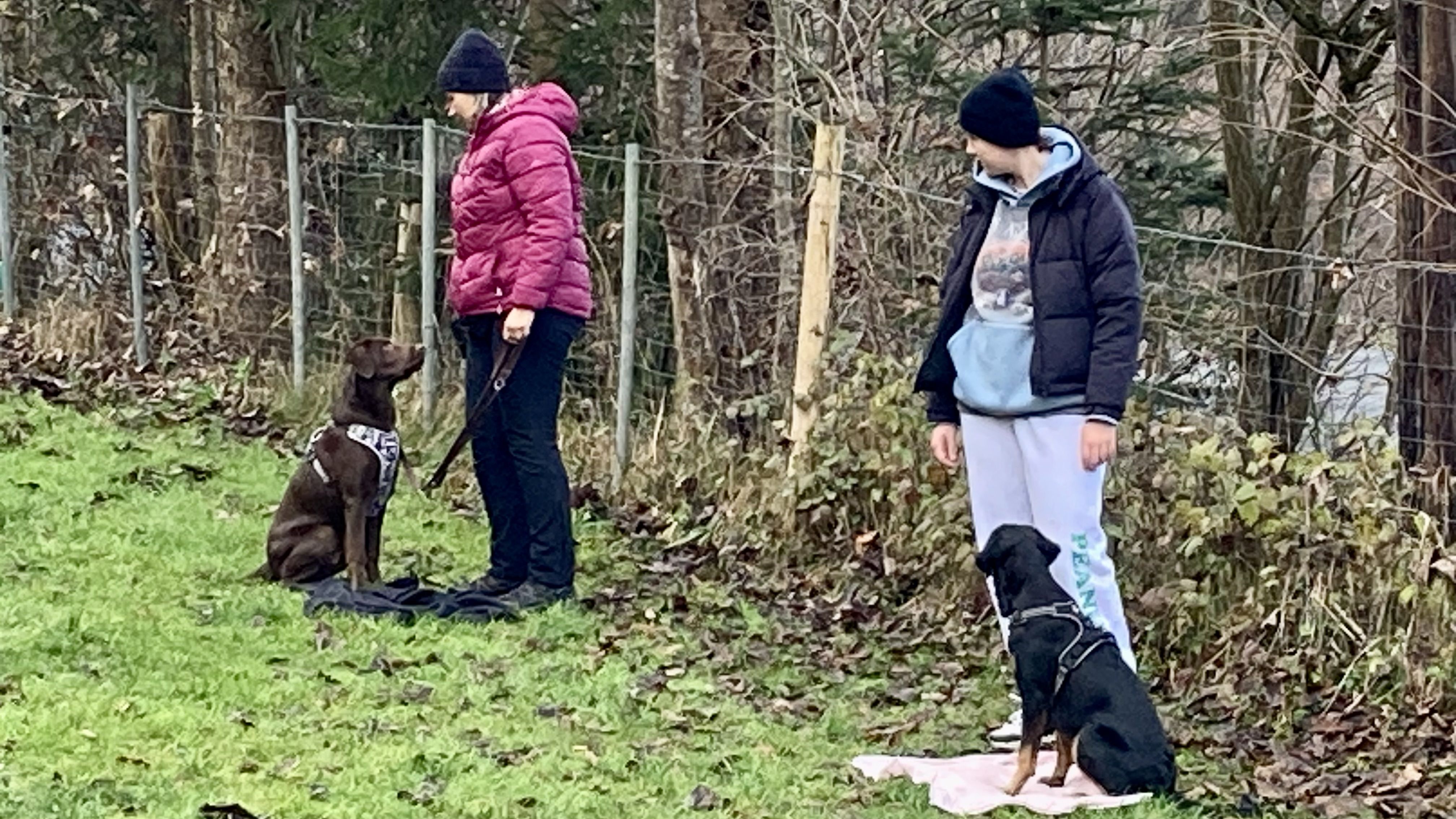 ⁃ In den Spaziergängen oder kleinen Wanderungen werden wir verschiedene Begegnungssituationen, die sich aus dem Alltag ergeben, gemeinsam in der Gruppe bewältigen. Im Weiteren besprechen wir, wie die Hunde zusätzlich bei der Bewältigung der Situation besser unterstützt werden können. Es wird auf die Distanz zwischen den Hunden geachtet, jeder Hunde benötigt mehr oder weniger Distanz zum anderen Hund. Im weiteren können wir auf die Körpersprache eurer Hunde eingehen, was bei der Bewältigung der Situationen einen große Rolle spielen kann.